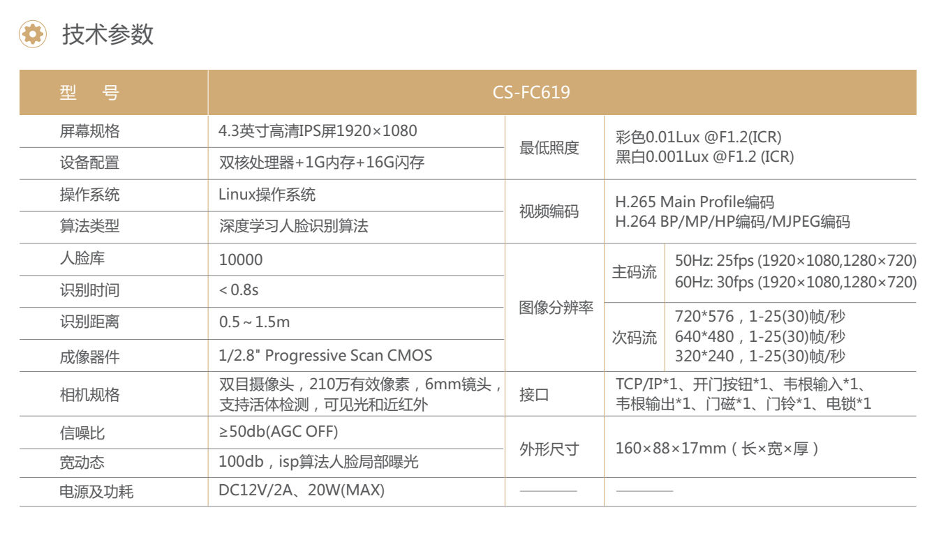 CS-FC619是科松具有高性能、高可靠性的人臉識別類(lèi)產(chǎn)品,依托深度學(xué)習算 法,識別速度快、準確率更高,支持人臉識別、刷卡或相互組合的識別方式, 主要應用于平安社區、企事業(yè)單位、政府大樓、金融網(wǎng)點(diǎn)、監獄等室內場(chǎng)所, 人臉識別終端具備高識別率、大庫容、識別快等特點(diǎn)。